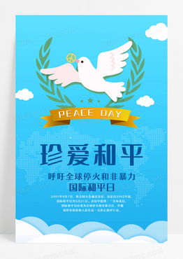 蓝色珍爱和平国际和平日节日宣传海报设计