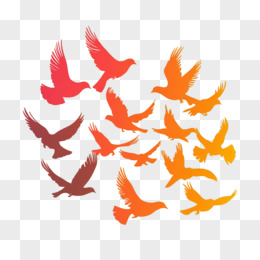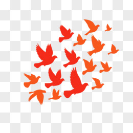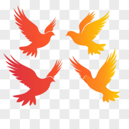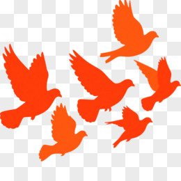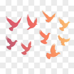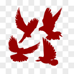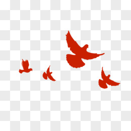 红色剪影飞舞的一群和平鸽免抠元素