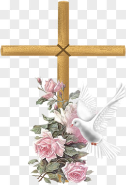 十字架和平鸽红色花朵