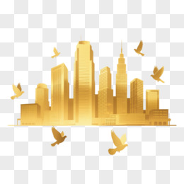 金色剪影城市建筑和和平鸽免抠元素