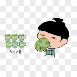 卡通手绘男生口渴喝水免抠素材