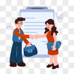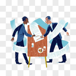 手绘卡通合同合作商业商谈场景元素