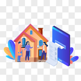 卡通手绘创意中介和租客签租房合同免抠元素