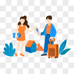 卡通扁平风房子成交钥匙商务房屋租赁素材元素