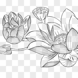 手绘国潮线条感国风亭子楼台荷花免抠元素
