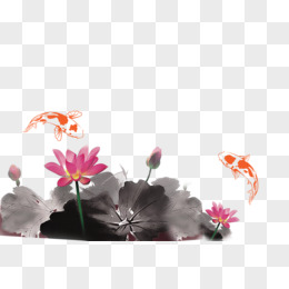 国潮旗袍女荷花鱼手绘卡通时尚素材
