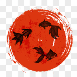 手绘水墨小孩坐船捞鱼俯视图免抠元素