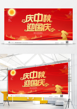 红色大气迎中秋迎国庆双节同庆宣传展板