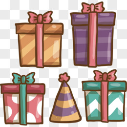 一组手绘彩色礼盒礼包礼物礼品合集系列四元素