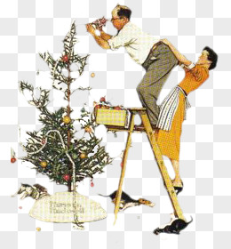夫妻合作做圣诞树