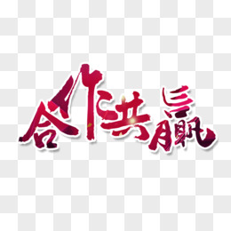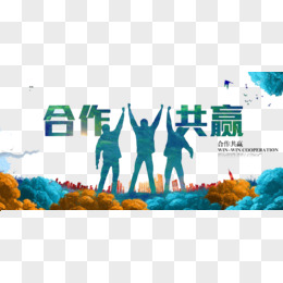 创意彩色携手共进合作共赢免抠矢量艺术字