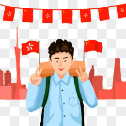 手绘卡通一家人庆祝香港回归纪念日免抠素材
