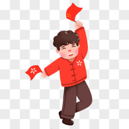 卡通手绘女孩手拿国旗和香港特别行政区旗免抠元素