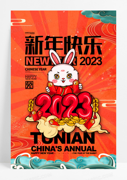 一组手绘免抠新年贴纸套图之兔年福袋素材