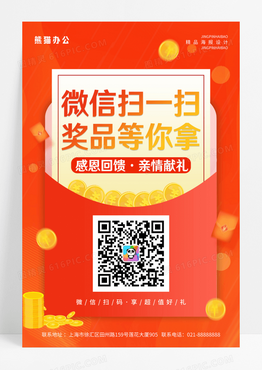 黄色红包金币微信扫一扫奖品等你拿扫码海报