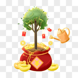 金融红包结合福袋植树节免抠元素