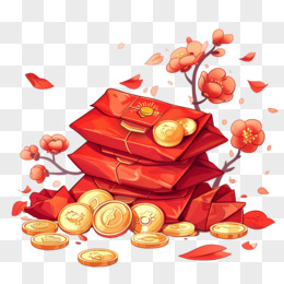 金银财宝红包剪纸新年新气象喜庆喜感开心 喜悦