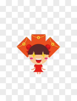 卡通新年装饰通用素材小女孩手拿红包免抠元素
