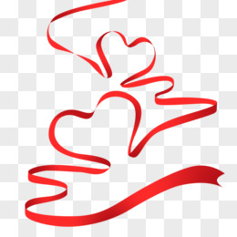 手绘插画红色爱心丝带免抠元素