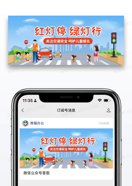 简约红灯停绿灯行关注交通安全彩色卡通公众号首图