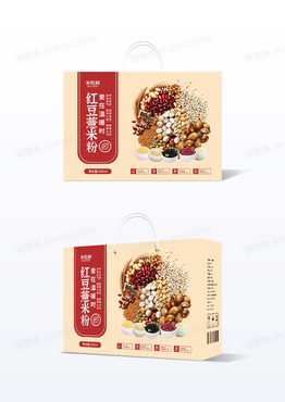 简约暖色插画红豆薏米粉食品礼盒包装设计