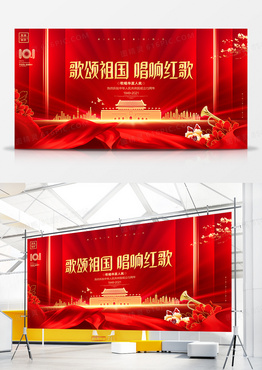 歌颂祖国唱响红歌十一国庆节建国72周年展板
