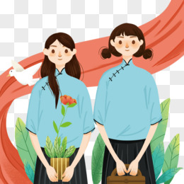 五四青年节女青年植物插画风素材