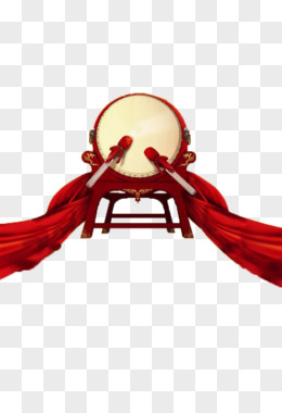 大锣鼓和鼓槌、红绸带
