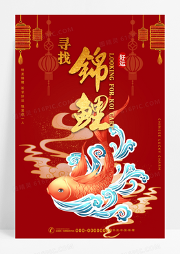幸运锦鲤红色系古典中式风格锦鲤抽奖海报