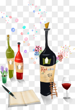 卡通手绘餐具与飞溅的汤和红酒免抠元素