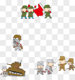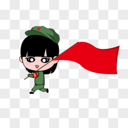 卡通手绘新四军手拿红旗庆祝胜利免抠元素