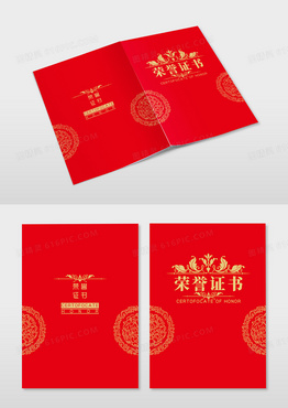 红色荣誉证书封面证书烫金封面
