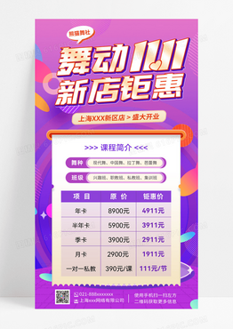 蓝紫背景简约手机海报舞动双十一新店钜惠促销海报