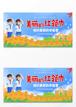 简约创意少先队员美丽的红领巾中国梦卡通简约展板
