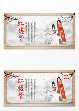 中国风国潮风水墨风格古建传统文化四大名著走进红楼梦展板