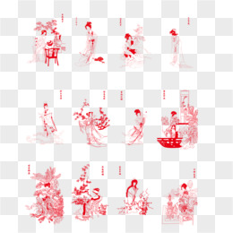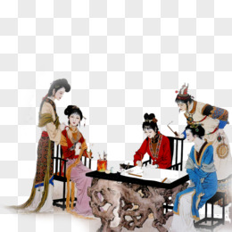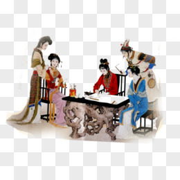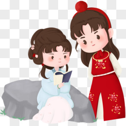 手绘红楼梦场景宝玉黛玉看书免抠素材