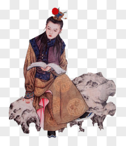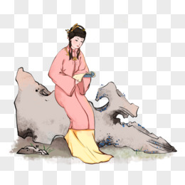 手绘Q版四大名著红楼梦林黛玉读书免抠元素