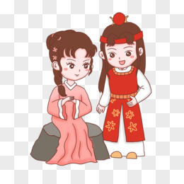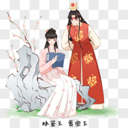 手绘卡通q版红楼梦贾宝玉和林黛玉人物免抠元素