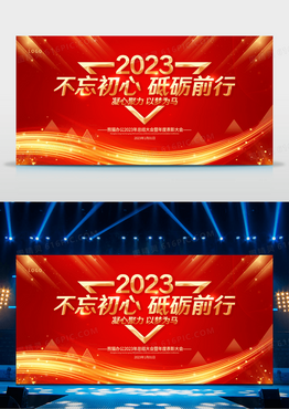 大气红金2023年会盛典不忘初心砥砺前行企业年会舞台背景宣传展板