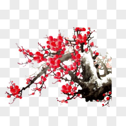 手绘冬季小场景主题之腊梅树下穿着棉服的女孩