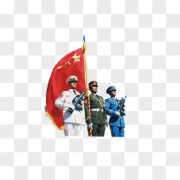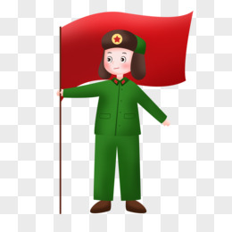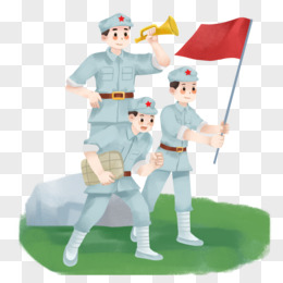 手绘新四军手持红旗出征场景元素