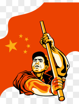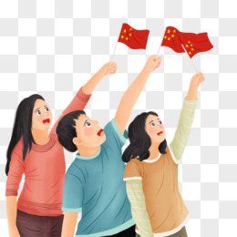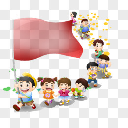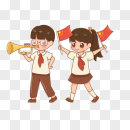 卡通手绘中学生手拿红旗庆祝免抠元素