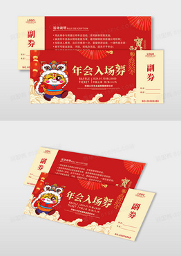 红色简约插画视觉创意抽奖券2024龙年年会入场券