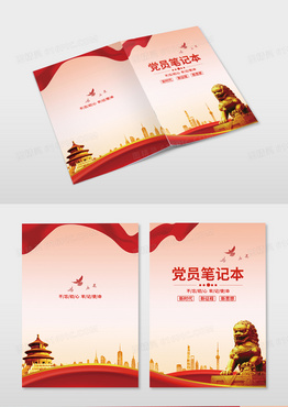 红色渐变笔记本封面设计教育笔记党史党建封面