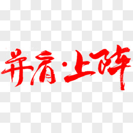 红色毛笔字并肩上阵