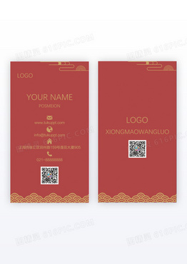 红色波浪花纹工作室古典名片工作室图片竖版名片模版