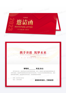 红色渐变线条创意大气202兔年年会邀请函企业年会邀请函2023年会邀请函