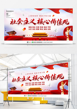 创意红色社会主义核心价值观党建展板