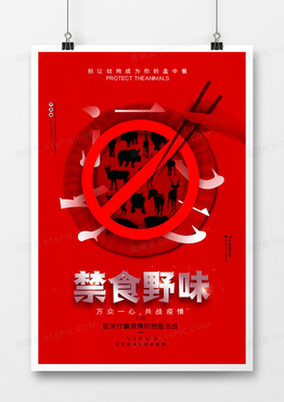 红色创意拒绝食用野味宣传海报