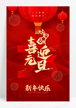 红色元旦喜庆2023兔子剪纸海报